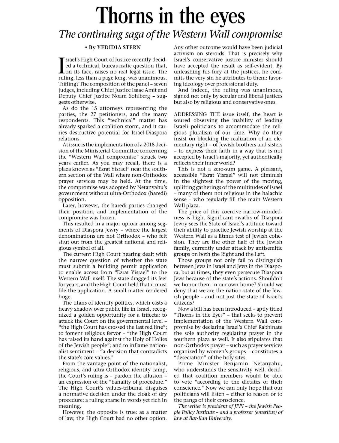 ADDRESSING THE issue itself, the heart is soured observing the inability of leading Israeli politicians to accommodate the religious pluralism of our time. Why do they insist on blocking the realization of an elementary right of Jewish brothers and sisters—to express their faith in a way that is not accepted by Israel’s majority, yet authentically reflects their inner world?
