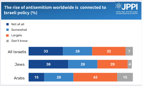 • Most say the rise of antisemitism worldwide is partly “due to Israeli policy.”