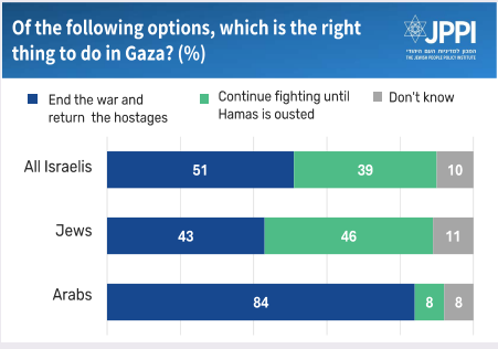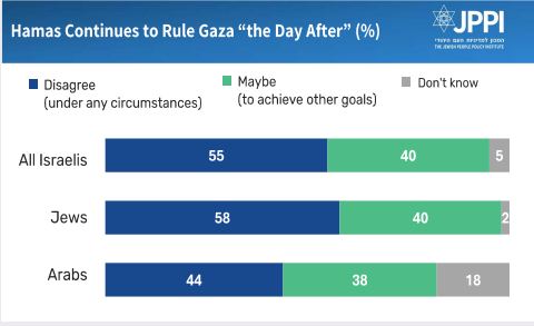 • Most Israelis are unwilling “under any circumstances” to accept continued Hamas rule in Gaza.