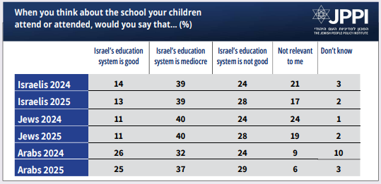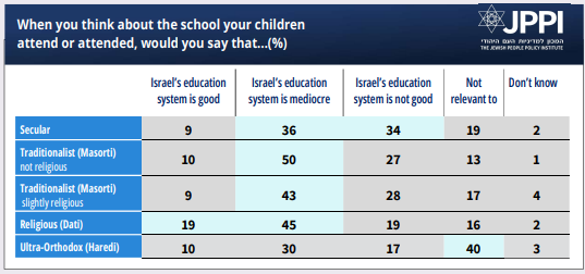 • Most rate the Israeli education system as mediocre or “not good.”