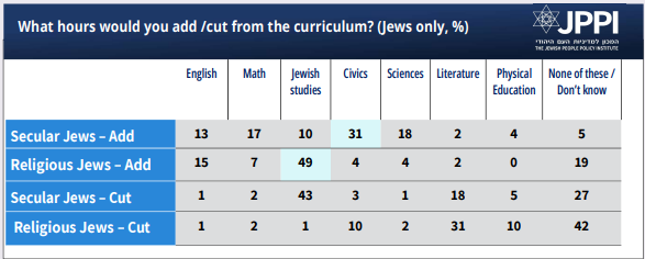 • Religious and traditionalist Jewish Israelis support adding more Jewish studies to the education curricula.