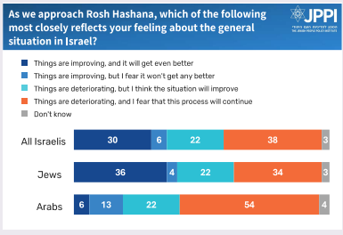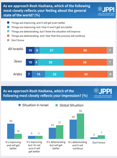 With the approach of Rosh Hashana, we look at how Israelis assess the past year and look ahead to the coming year. The bottom line is unsurprising: Israelis are entering the new year with a sense of pessimism, both about Israel and the wider world.