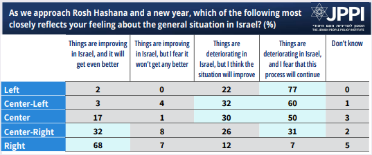 • A large majority of Israelis believe Israel is on a downward trajectory.