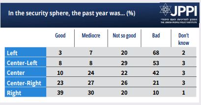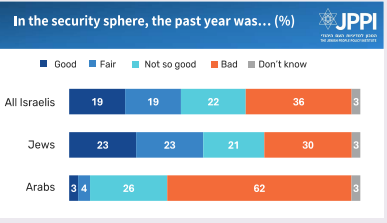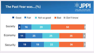 • Six in ten think the year was “bad” or “not good” for Israel’s economy and its security.