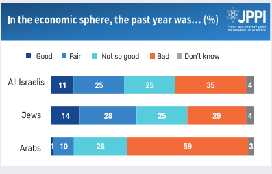 • Eight in ten Israelis feel that the past year was “bad” or “not good” for Israeli society.