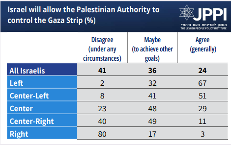 • Most Israelis are willing to accept Palestinian Authority rule in Gaza.
