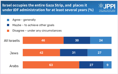 • Most Israelis are willing to accept an Israeli occupation and military administration of Gaza.