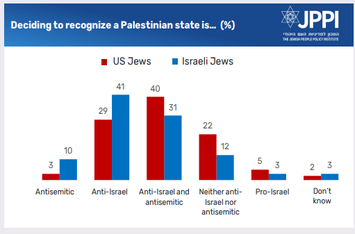 - A majority view recognition of a Palestinian state as an anti-Israel move but are divided on whether it is also antisemitic.