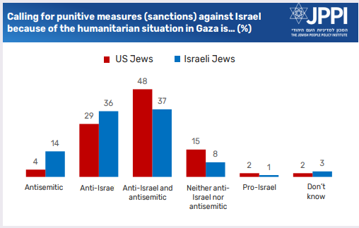 - Half view calls for sanctions on Israel as both anti-Israel and antisemitic.