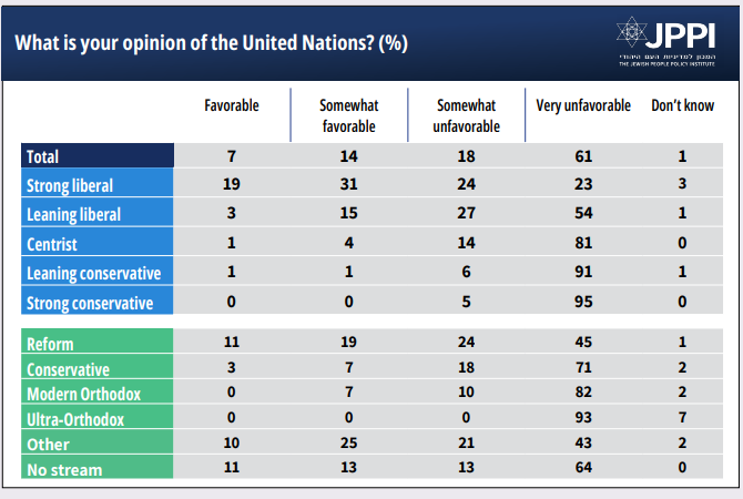A majority of respondents expressed negative views of the UN. Of these, 61% said their opinion was very negative, and 18% described it as somewhat negative. Only a fifth of respondents expressed a positive view (somewhat positive or very positive). Along the ideological spectrum, the more conservative the position, the higher the share of respondents with a very negative opinion of the UN. A quarter of the strong liberal cohort holds a very negative view of the international body, while an overwhelming 95% of strong conservatives share this view.