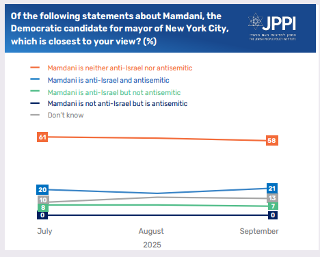 - Again this month, a majority say the Democratic candidate for mayor in New York City is anti-Israel and antisemitic.