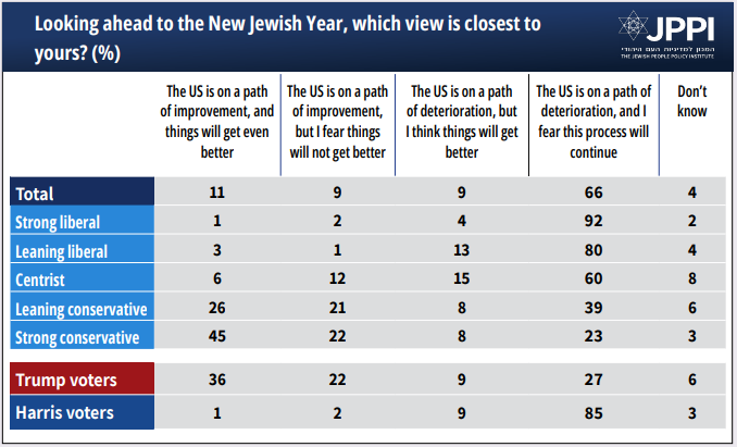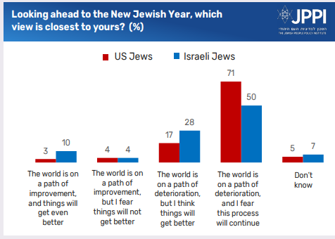 American Jewish respondents enter the new year with a sense of pessimism regarding the United States, Israel, and the world.