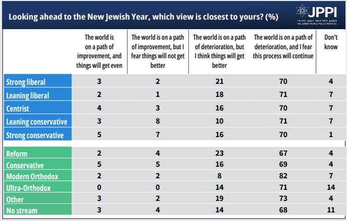 - Seven in ten American Jews fear continued deterioration in the state of the world.