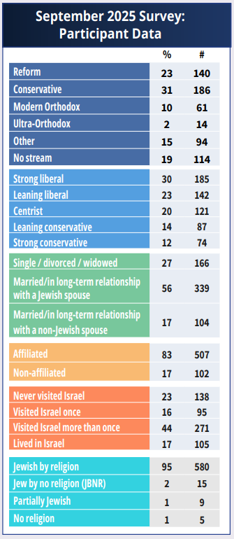 This report is an analysis of a survey conducted among 609 American Jews registered for JPPI’s Voice of the Jewish People Index panel. In addition, 105 Canadian respondents and 52 from the United Kingdom participated (their responses were included in the analysis only as explicitly noted).