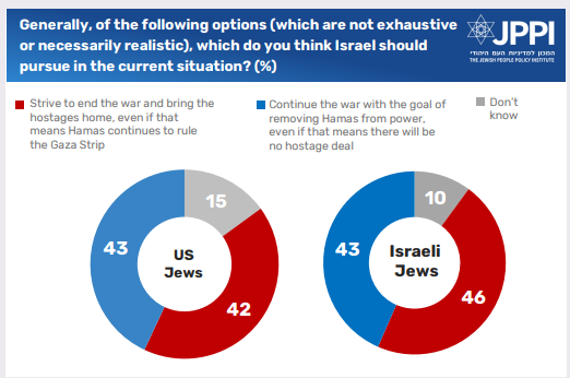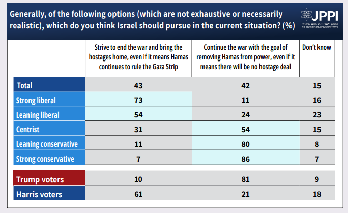 - Two in five support continuing the war even if it means no hostage deal is reached.