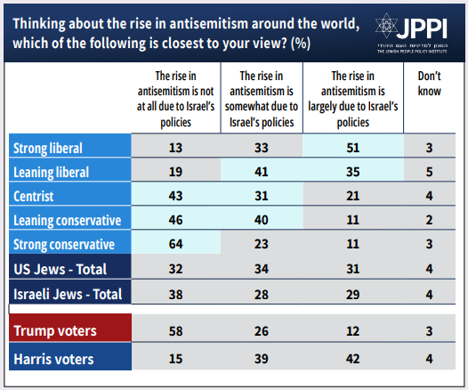 - Most respondents identify a link between Israeli policy and the rise in antisemitism.