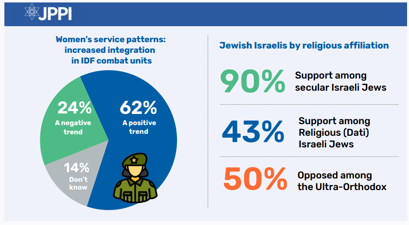 - Most Israelis support the rising trend of women serving as combat soldiers.