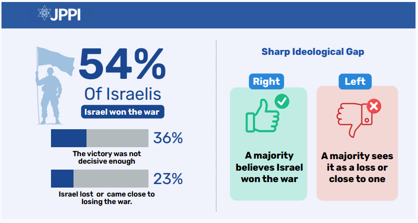 - Most of the public believes Israel won the war in Gaza, but that the victory was “not large enough.”