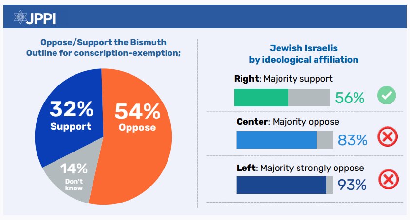 - Most Israelis oppose the Bismuth Outline for conscription-exemption; one-third view it as a “reasonable compromise.”