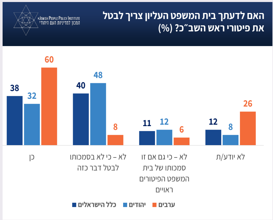 - רובם סבורים שבית המשפט העליון לא צריך לבטל את פיטורי ראש השב"כ