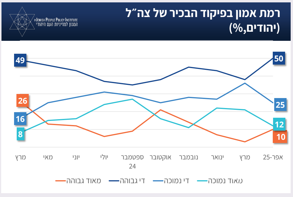 - לאחר החילופים בצמרת, עלייה ברמת האמון של היהודים בפיקוד הבכיר של צה"ל