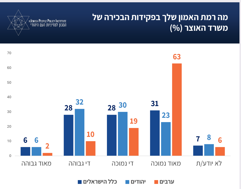 - רמת האמון של רוב הציבור בפקידות הבכירה של משרד האוצר נמוכה