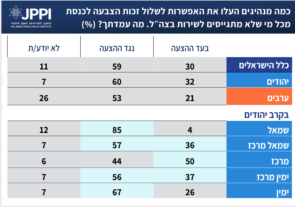 - רוב מתנגדים לשלילת זכות הצבעה ממי שאינו משרת בצה״ל.