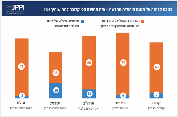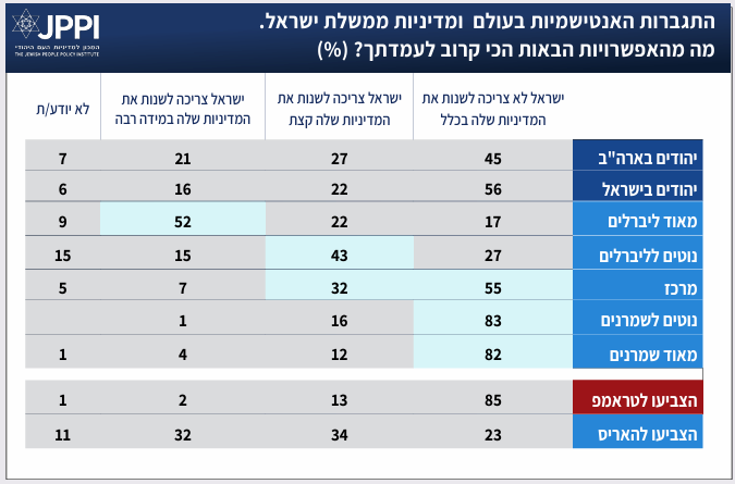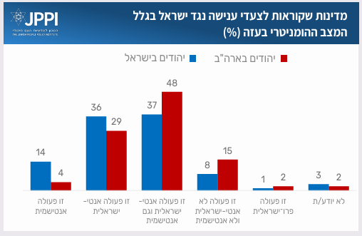 - פחות ממחצית המשיבים סבורים כי ישראל צריכה לשנות מדיניות בשל העלייה באנטישמיות