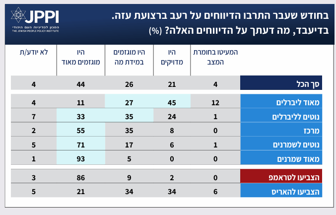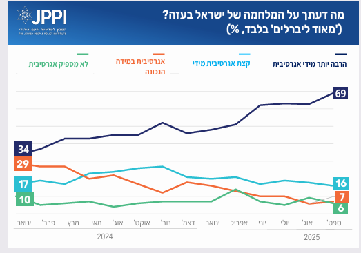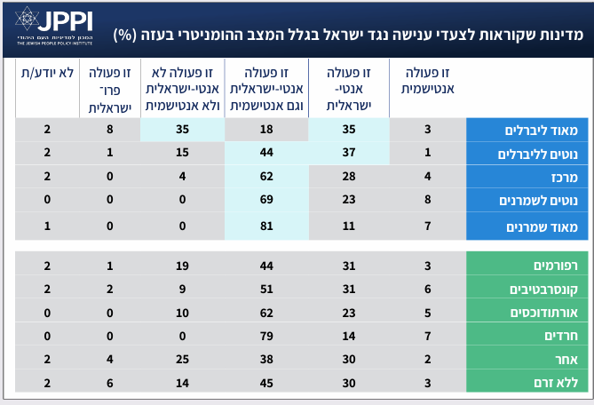 - שיעור ה"מאוד ליברלים" הסבורים שתגובת ישראל ל-7 באוקטובר אגרסיבית מדי – בשיא