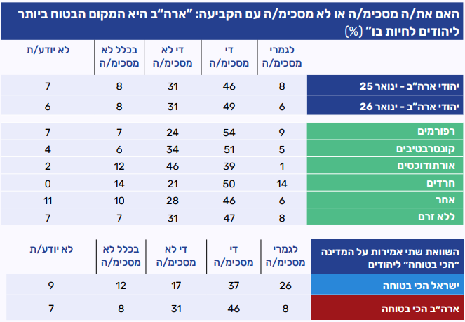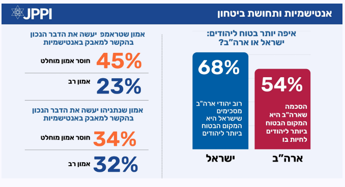 • עלייה בשיעור הסבורים כי ישראל היא המקום הבטוח ביותר עבור יהודים