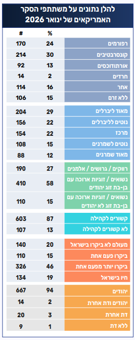 להלן נתונים על משתתפי הסקר האמריקאים של ינואר 2026: