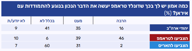 • האמון בטראמפ בהקשר לאיום האיראני נמוך מהאמון ביחסי ישראל-ארה"ב ואנטישמיות