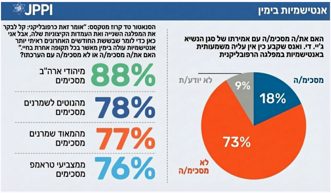 - רוב גדול מהיהודים סבורים שישנה עלייה משמעותית בביטויי אנטישמיות במפלגה הרפובליקנית