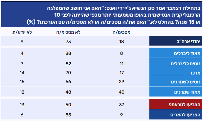 - רוב זה כולל גם שיעור משמעותי מקרב היהודים שהצביעו לטראמפ ומזדהים עם עמדות שמרניות