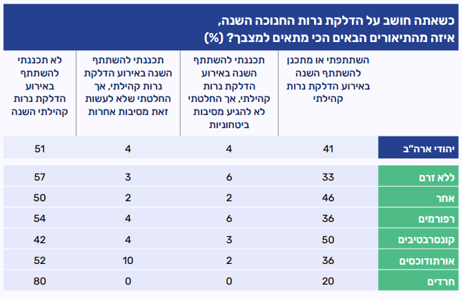 - מחצית לא תכננו להשתתף באירוע הדלקת נרות חנוכה קהילתי השנה